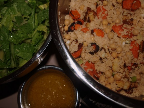 This salad is healthy (uses whole wheat couscous) and flavorful (sweet roasted vegetables and tart lemon).